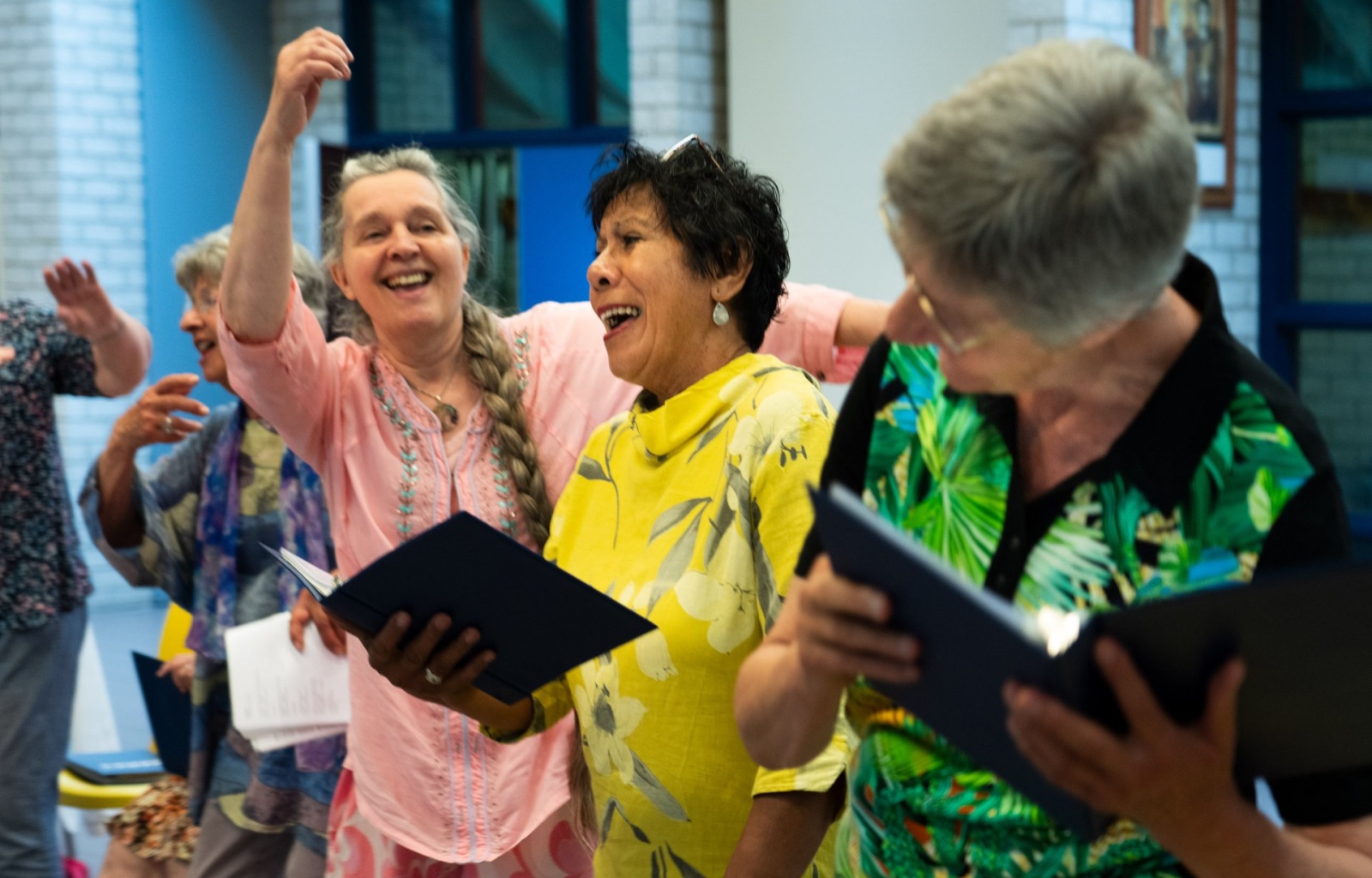 Deze middag is het Mama Verhalen Koor bij ons op bezoek! En na het concert kun je meedoen aan de bingo Het Mama Verhalen Koor is een bijzondere groep vrouwen met verschillende culturele, achtergronden. Wekelijks komen zij bij elkaar om samen te zingen en hun ervaringen van afgelopen week met elkaar te delen. Tijdens workshops schrijven de Mama's over thema's uit hun leven. Van deze verhalen worden liedjes gemaakt die de Mama's instuderen onder professionele begeleiding van Marion de Laat. Het Mama Verhalen Koor zingt haar eigen levenslied. We horen vaak mensen zeggen: "ik kan niet zingen!". Bij het Mama Verhalen Koor kan iedereen meezingen. Wij zijn een open groep, iedereen kan op elk gewenst moment inhaken. Vrouwen die mee willen zingen zijn altijd welkom.