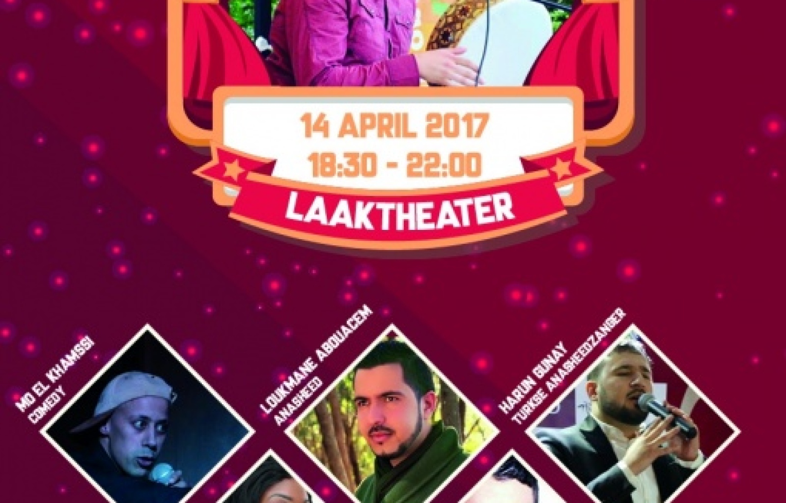 Ibrahim on Tour is een avond vol prachtige liederen, comedy en inspirerende teksten. Dit keer met o.a. Ibrahim El Kaddouri (Anasheed), Mo El Khamssi (Comedy), Lokmane Abouacem (Anasheed) , Lucinda Sedoc (Comedy) en nog veel meer! Deze editie is voor jong en oud dus neem familie, vrienden, kennissen, collega's en buren mee. In Anasheed liederen wordt gezongen over de islam en over maatschappelijke